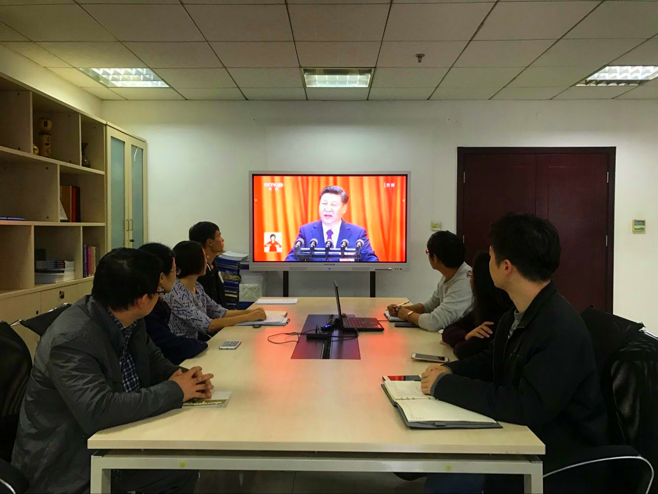 10月18日上午,中国共产党第十九次全国代表大会在北京人民大会堂隆重开幕。中国水科院党委按照水利部直属机关党委通知,要求各基层党组织自行认真组织干部职工收听收看并及时报送相关情况。人事处党支部、大坝秘书处党支部、中水科技党总支等组织集体观看开幕式;水资源所部分现场观测研究人员在甘肃白银市兴电灌区项目一线集体观看;部分党支部使用电脑、手机等方式在办公室直播,关注度很高;部分党支部组织同步热烈讨论,干部职工深受鼓舞,信心十足,积极转载十九大报告内容,抒发爱党爱国情怀。
