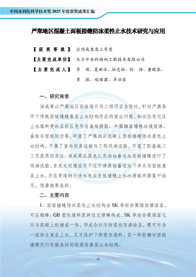 严寒地区混凝土面板接缝防冰柔性止水技术研究与应用