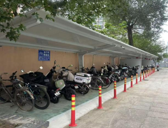 为让职工停放电动自行车更安心、日常出行更便捷、园区生活更安全,北小区经过前期现场踏勘、安全选址,近日完成了便民车棚增设工作,为职工群众的“出行伙伴”打造遮风挡雨、安全有序的专属停放空间!