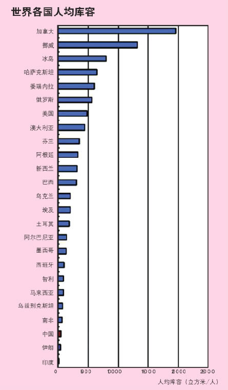 发展水电离不开修建水库大坝。联合国定义了一个人类发展指数以综合反映各国人均的GDP、寿命和教育水平。把各国人类发展指数与人均水库库容进行比较可以发现,对绝大多数国家而言,一个国家或地区水库大坝发展水平与国家人类发展水平呈较强的正相关。人类发展指数大于0.9的国家,人均库容拥有量平均为3184立方米,人类发展指数介于0.7~0.8的国家,人均库容拥有量平均为541立方米,如中国2007年人类发展指数为0.772,在182个国家中列第92位,人均库容528立方米,人类发展指数介于0.5~0.6的国家,人均库容拥有量仅为125立方米。这与联合国人类发展报告中所指出的“全球水基础设施的分布与全球水风险的分布呈反比关系”是一致的。因此储水设施建设通常既是推动发展的关键因素,同时也是经济社会发展的自然结果。随着人口的增加和城市化的进一步发展,全球每年预计需要增加640亿立方米的供水量。不少人把河道变干归因于水库,这其实是一种误解,河道干涸的主要原因是人口不断增加引起的总用水量持续上升,是区域发展超越水资源承载力的表现。要实现供水安全和生态良好的目标,必须提高用水效率和增加雨洪利用,必须进一步修建足够的储水设施。因此,加快水电资源的开发利用既是发展清洁能源的需要,也是解决日益严峻的水安全问题的途径之一,必会被更多的国家所重视。