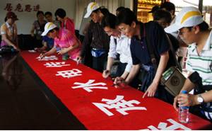 1912发电至今仍在使用的水轮发电机组 党员、职工在主题条幅签名留念