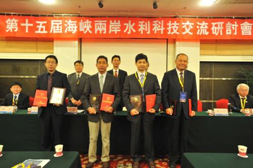 在本届研讨会上,还举行了第十届钱宁泥沙科学技术奖颁奖仪式,由国际泥沙培训中心戴定忠教高主持。大会嘉宾向获奖者颁奖。获得本届泥沙科学技术奖的专家分别是,来自台湾地区的黄金山先生、我院泥沙研究所的郭庆超教授、中国科学院水利部水土保持研究所李占斌研究员、以及清华大学的吴保生教授。