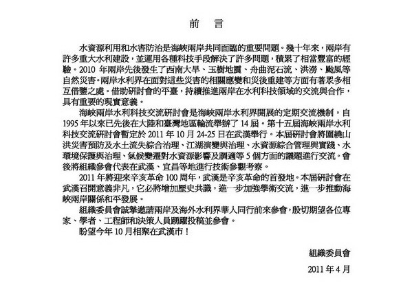 第十五届海峡两岸水利科技交流研讨会一号通知